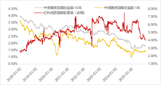图:10年、1年期国债收益率与红利低波指数股息率